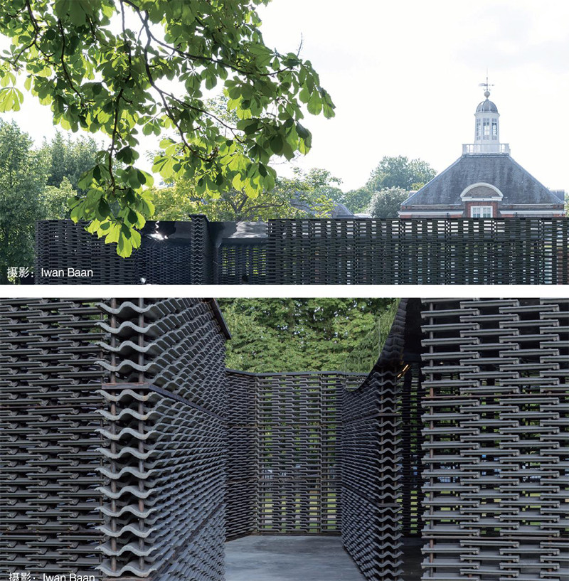 這次她用水泥瓦設(shè)計(jì)的展亭,以兩個(gè)長方形體量組合成庭院空間,通過運(yùn)用光與水的元素,營造出墨西哥民居的感覺,同時(shí)也和倫敦的文化環(huán)境產(chǎn)生聯(lián)系。